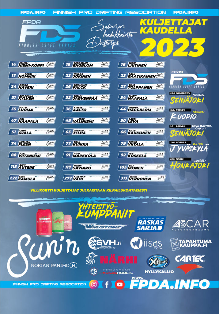 Finnish Drift Series 2025 kuljettajat – 27 huippukuljettajaa valmiina taistelemaan kauden 2025 mestaruudesta!